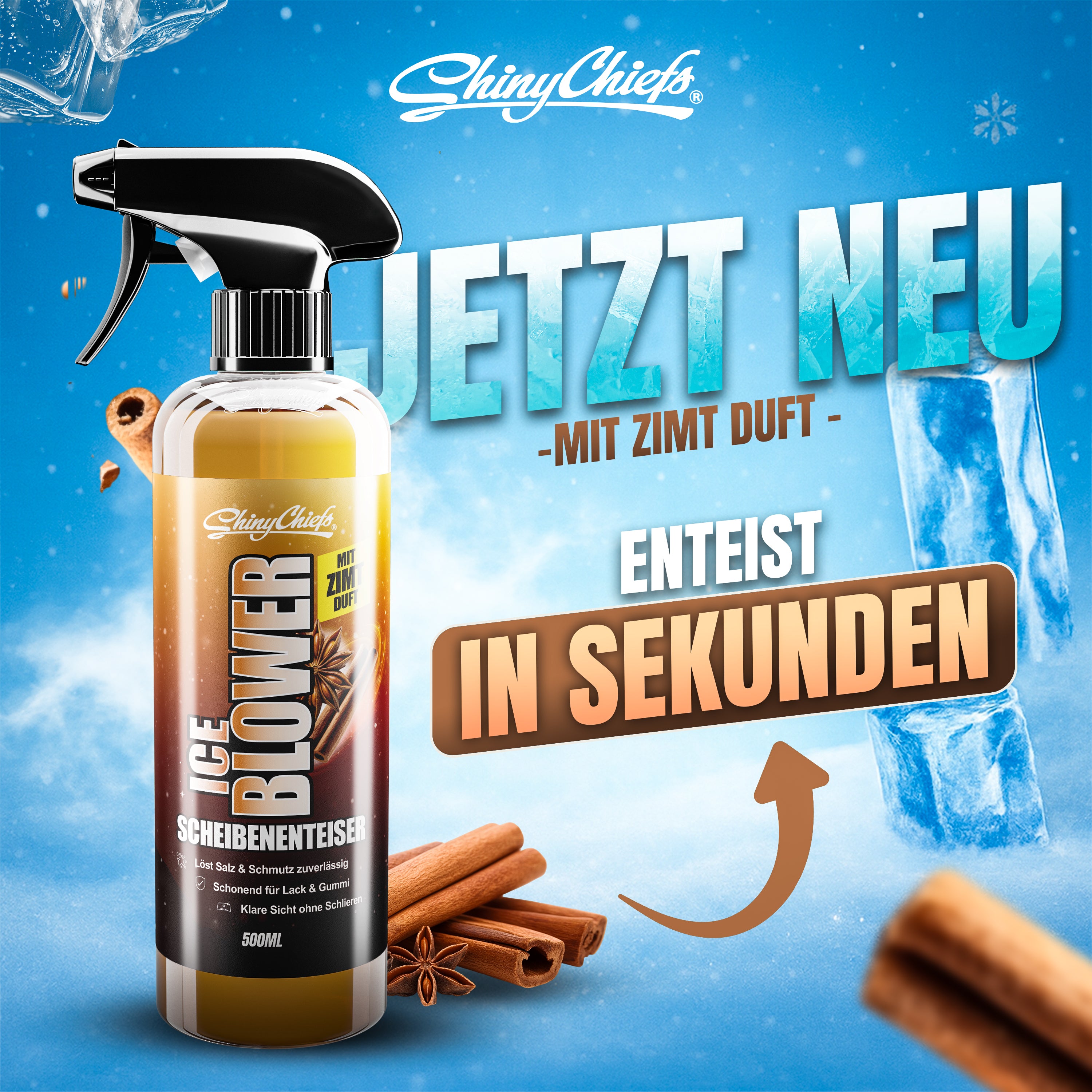ShinyChiefs ICE BLOWER befreit sekundenschnell Eis von allen zugefrorenen Scheiben, Außenspiegel und Scheinwerfer. Dieses hochkonzentrierte Produkt schützt vor Wiedervereisung, sorgt rundum für klare Sicht und damit für mehr Fahrsicherheit. Der wirksame Winterhelfer macht Eiskratzer überflüssig und verhindert dadurch verkratzte Scheiben. Das enthaltene Glycerin hält Wischergummis und Gummi geschmeidig.